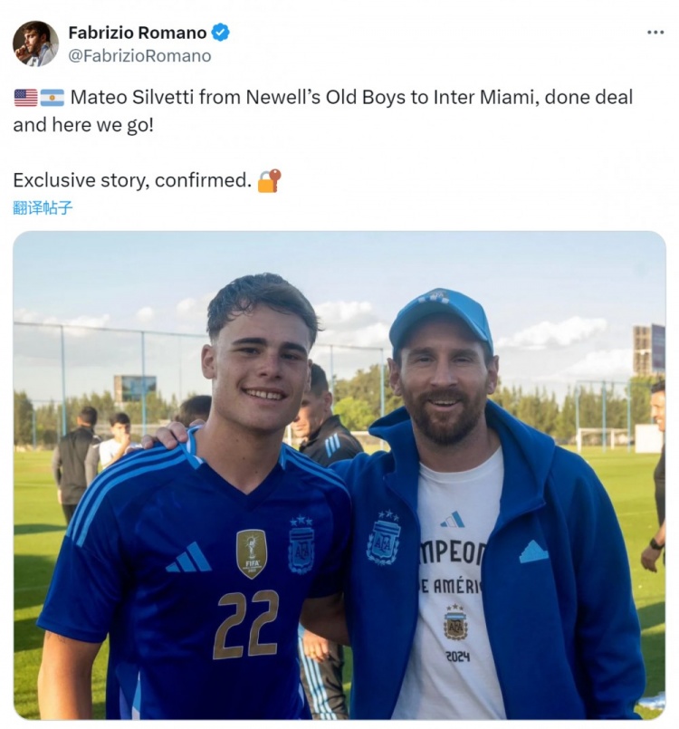 罗马诺确认:迈阿密国际成功签下纽维尔老男孩新星边锋西尔维蒂,年仅19岁